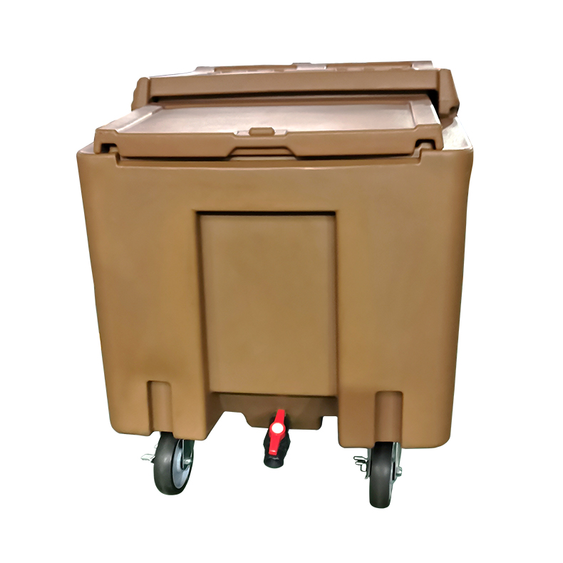 The ice storage truck with diagonal pull cover is unique in shape, beautiful and easy to use. The thick foam insulation layer has excellent thermal insulation performance . Whether in hot summer or humid places, ice cubes can be stored for several days. The unique water tank and water filter plate can separate the ice cubes from the water and extend the ice cube storage time. The well-designed handle makes the ice truck easy to move and carry.